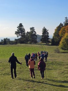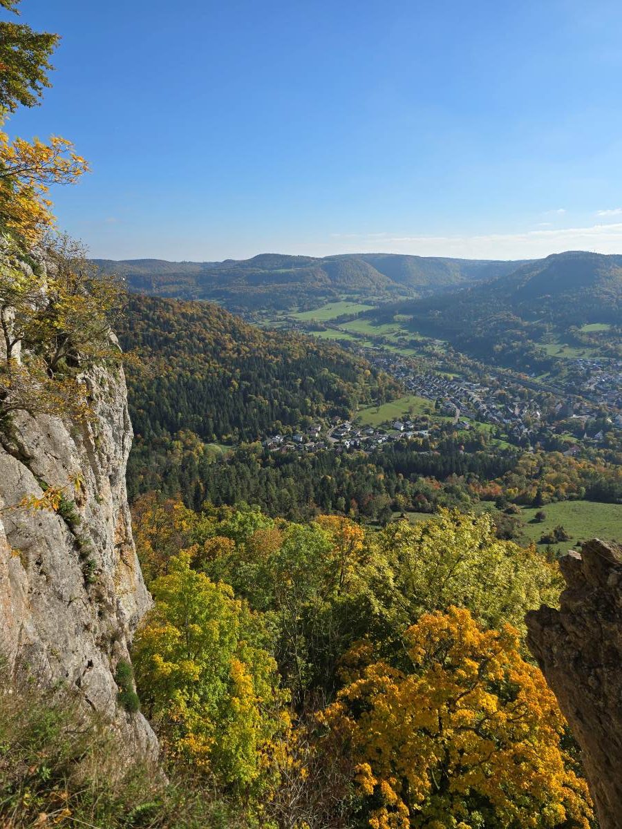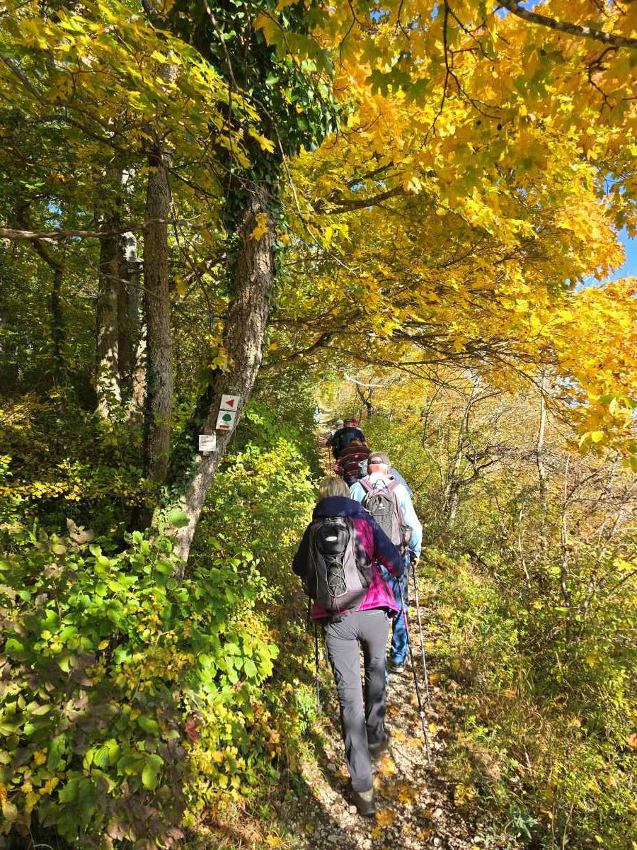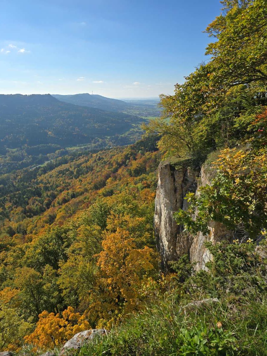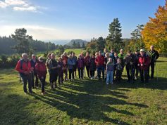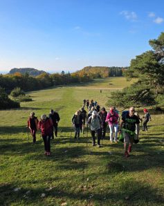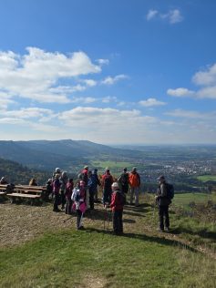 Unsere diesjährige Herbstwanderung führte uns in die Region Albstadt. Treffpunkt war um 13 Uhr an der Steinbühlhalle. Das tolle Herbstwetter motivierte stolze 28 Wanderfreunde zum Mitwandern. Zunächst fuhren wir mit Privat-PKWs zum Wanderparkplatz am Ortseingang von Albstadt-Burgfelden. Das erste Ziel unserer Wandergruppe war der Aussichtsberg Böllat auf 922 Metern Höhe, von wo aus man eine einzigartige Sicht bis in den Schwarzwald und die Vogesen hat.
